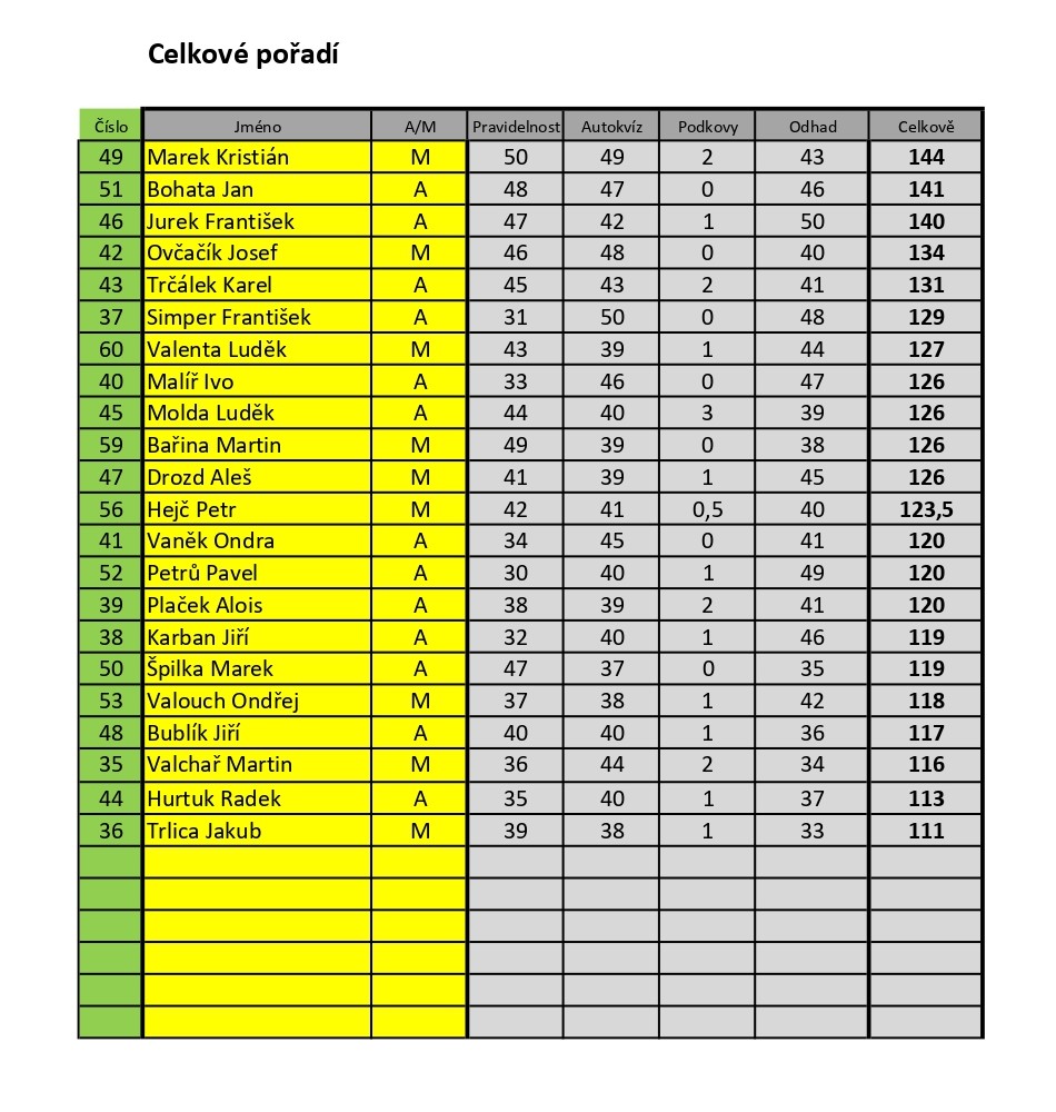 Výsledky závodu:
